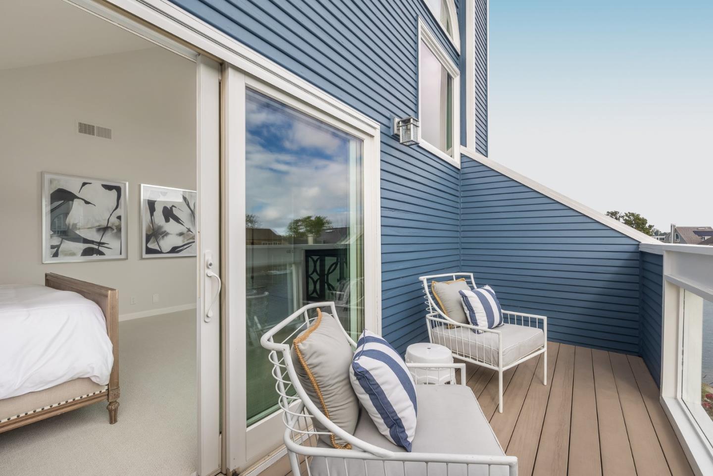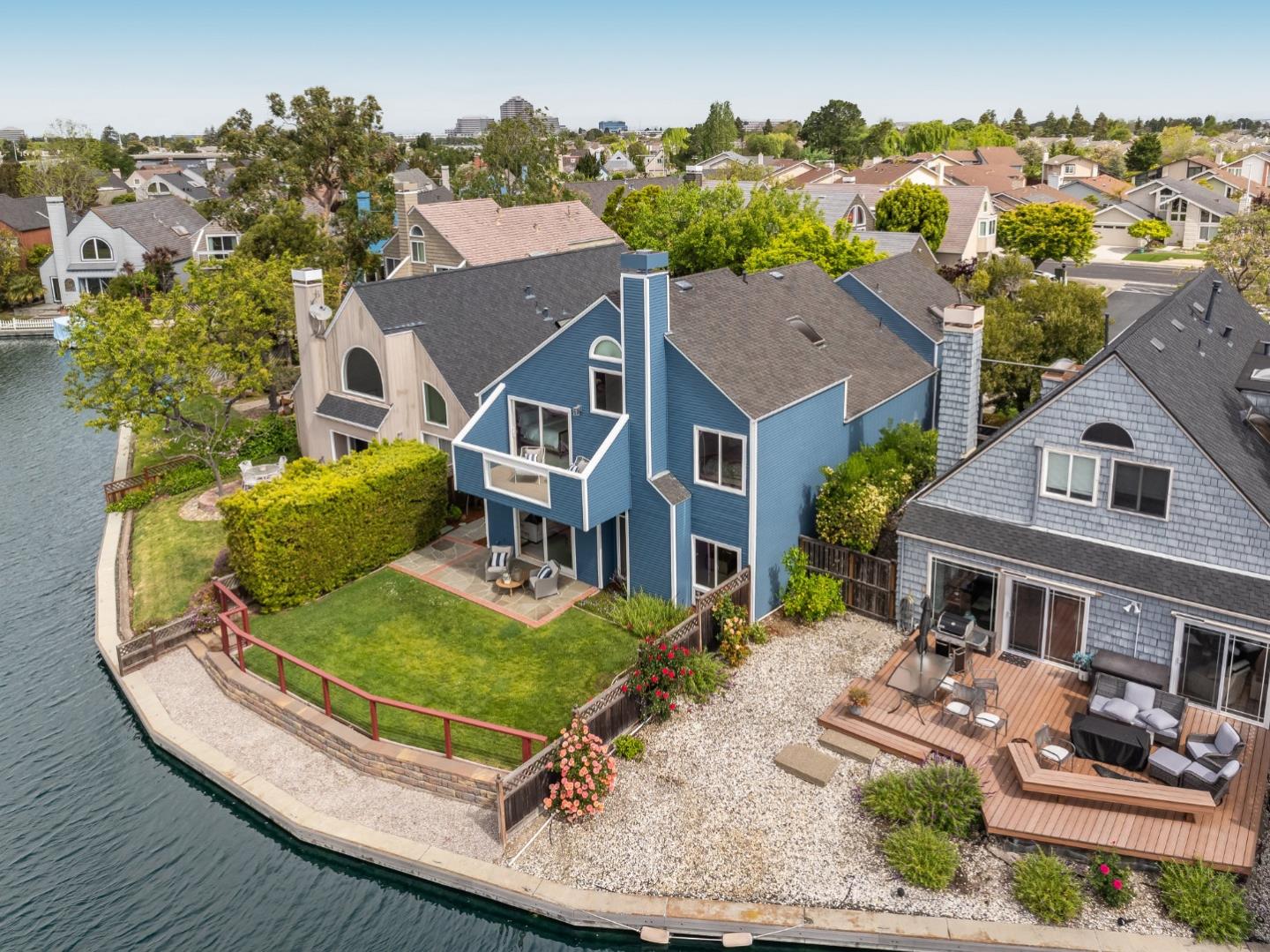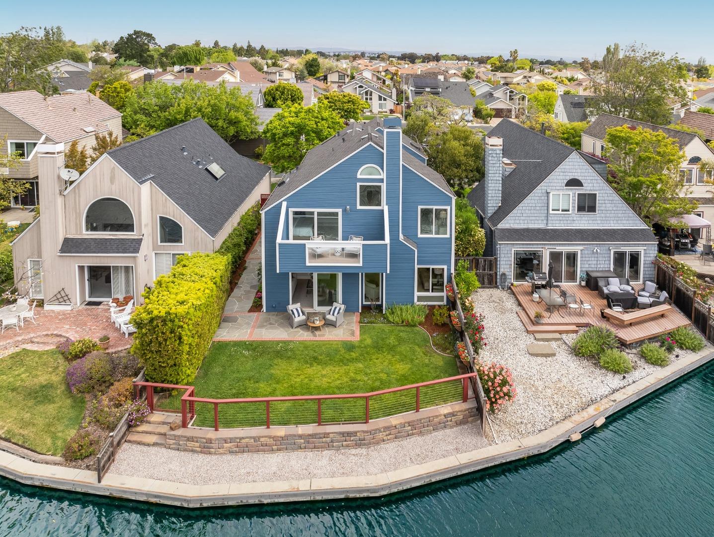 Ensconced in the prestigious enclave of Whalers Island and idyllically situated on the glistening aquamarine waters of Foster City lagoon, this spectacular 4BR/3.5BA residence is truly a luxurious private oasis. Magnificent elevated ceilings, clean contemporary lines, expansive windows, and distinctive architectural elements provide an exquisite backdrop for a captivating display of volume, scale, and radiant natural light. Thoughtfully designed to showcase scenic waterfront views and vibrant rear grounds, the cohesive floor plan harmoniously weaves formal and casual living spaces. Artfully pairing granite, tile, wood, and stainless steel, the bright remodeled eat-in kitchen is primely positioned off the family room, which grants access to the outdoor living area. Escape to the primary suite featuring a soaring half-vaulted ceiling, a water-facing balcony, walk-in closet, and dual vanities. A second impressive bedroom suite, two bedrooms, dedicated office, hall bathroom, and laundry room complete the upper level. Remarkable amenities include 2 pools, a kiddie pool, jacuzzi, 2 tennis courts, 2 pickle ball courts, a basketball court, picnic area, and a boat park. Experience Venetian living at its finest with an exclusive boat dock and 5 miles of meandering waterways to explore!