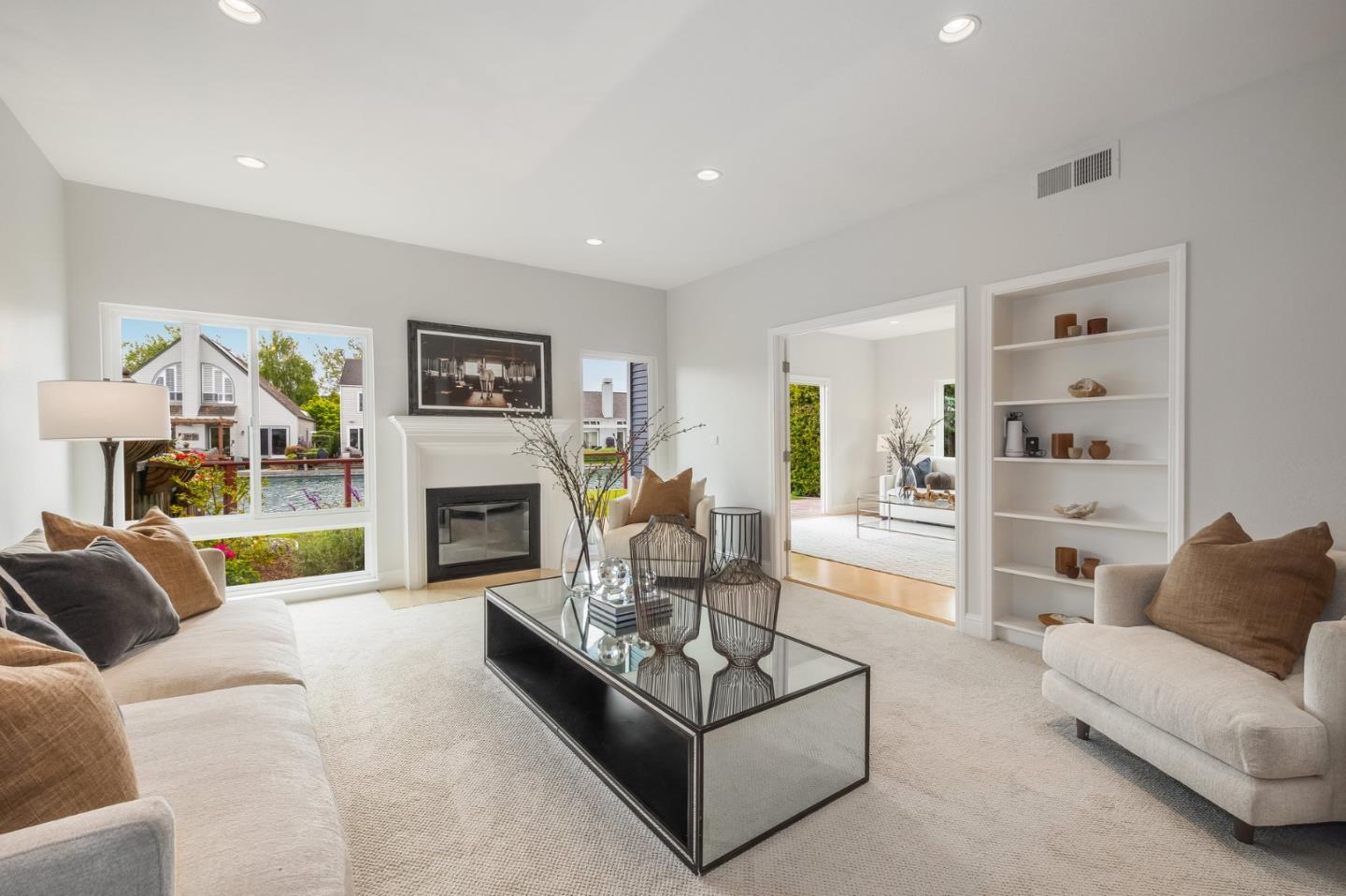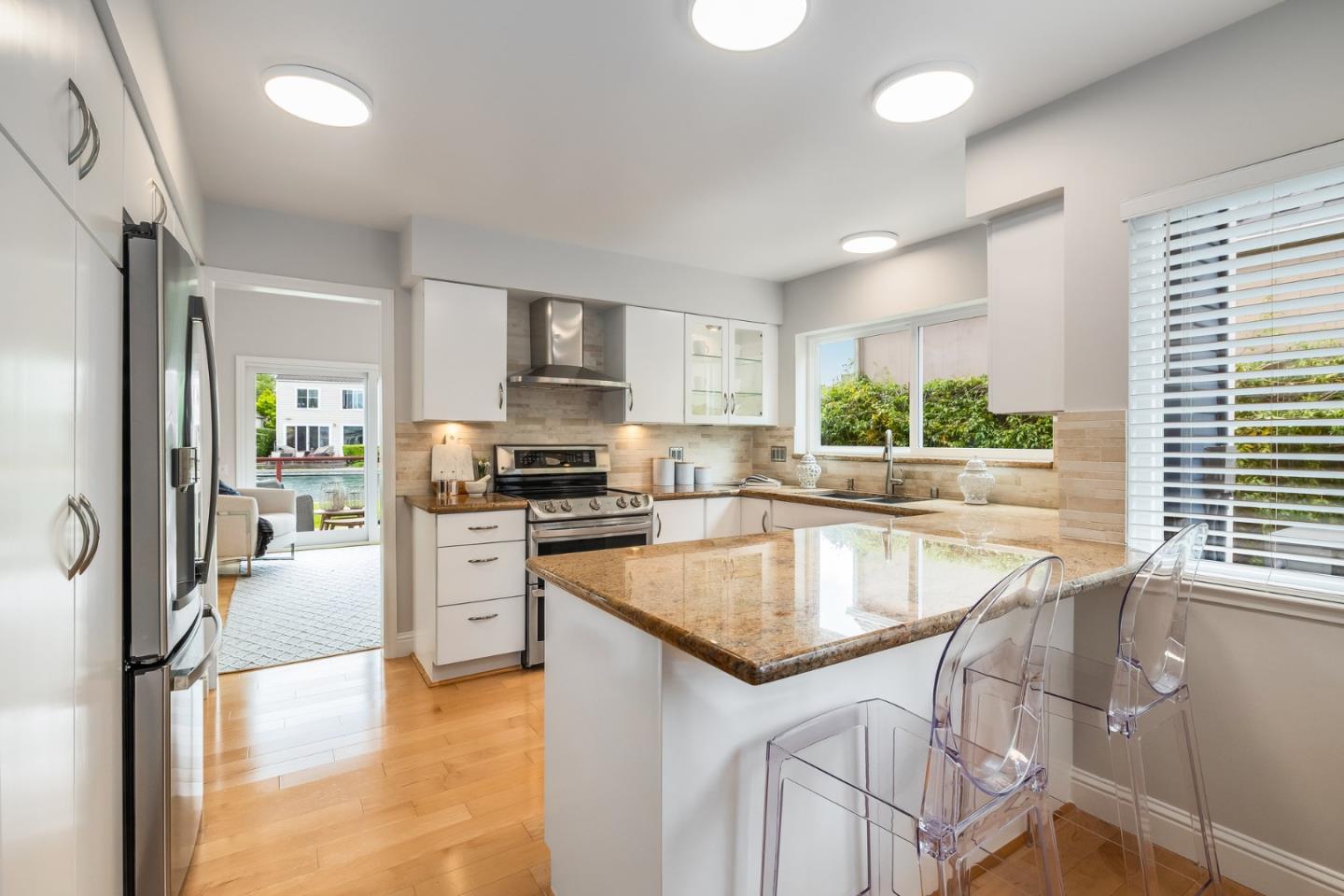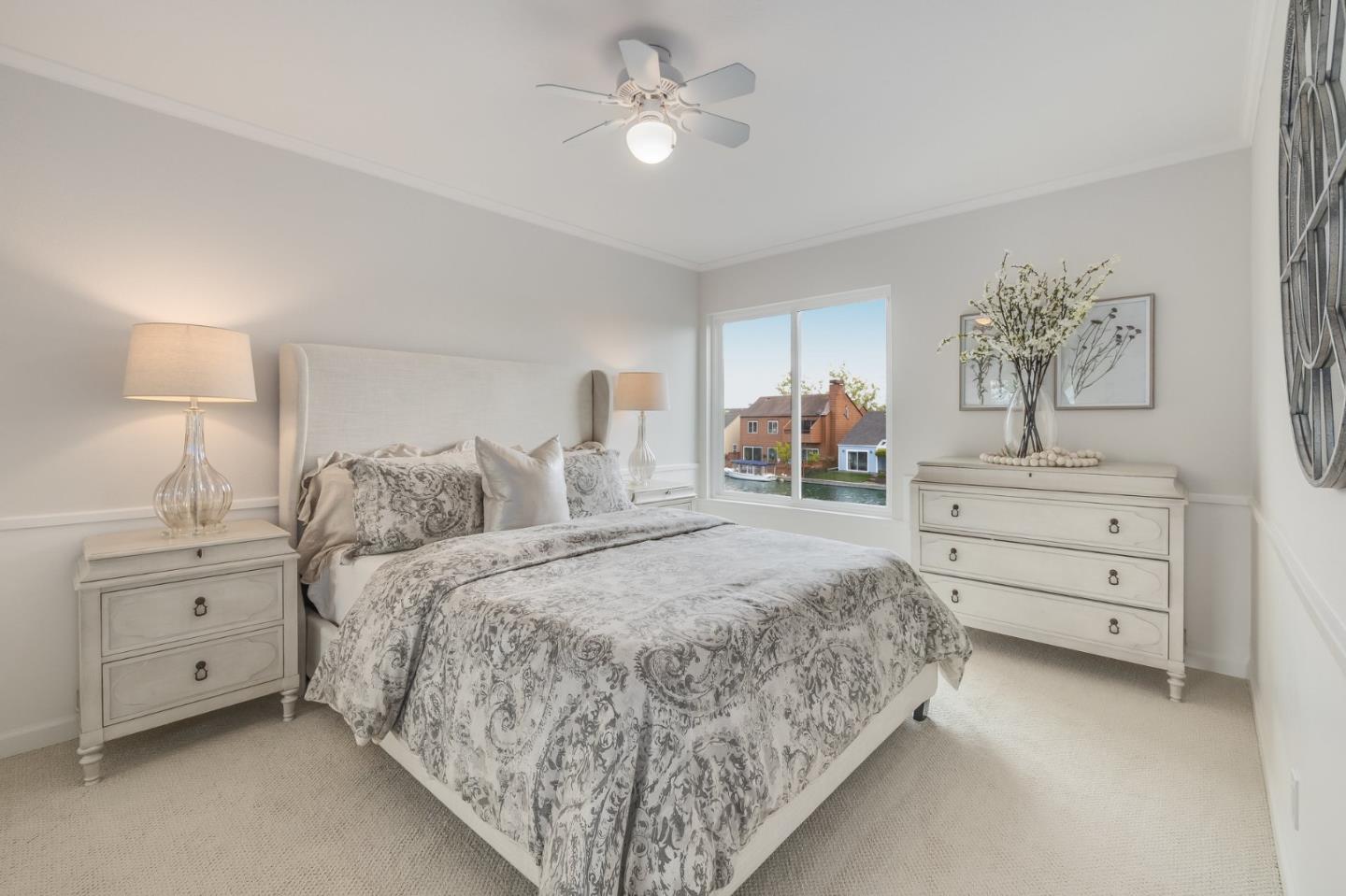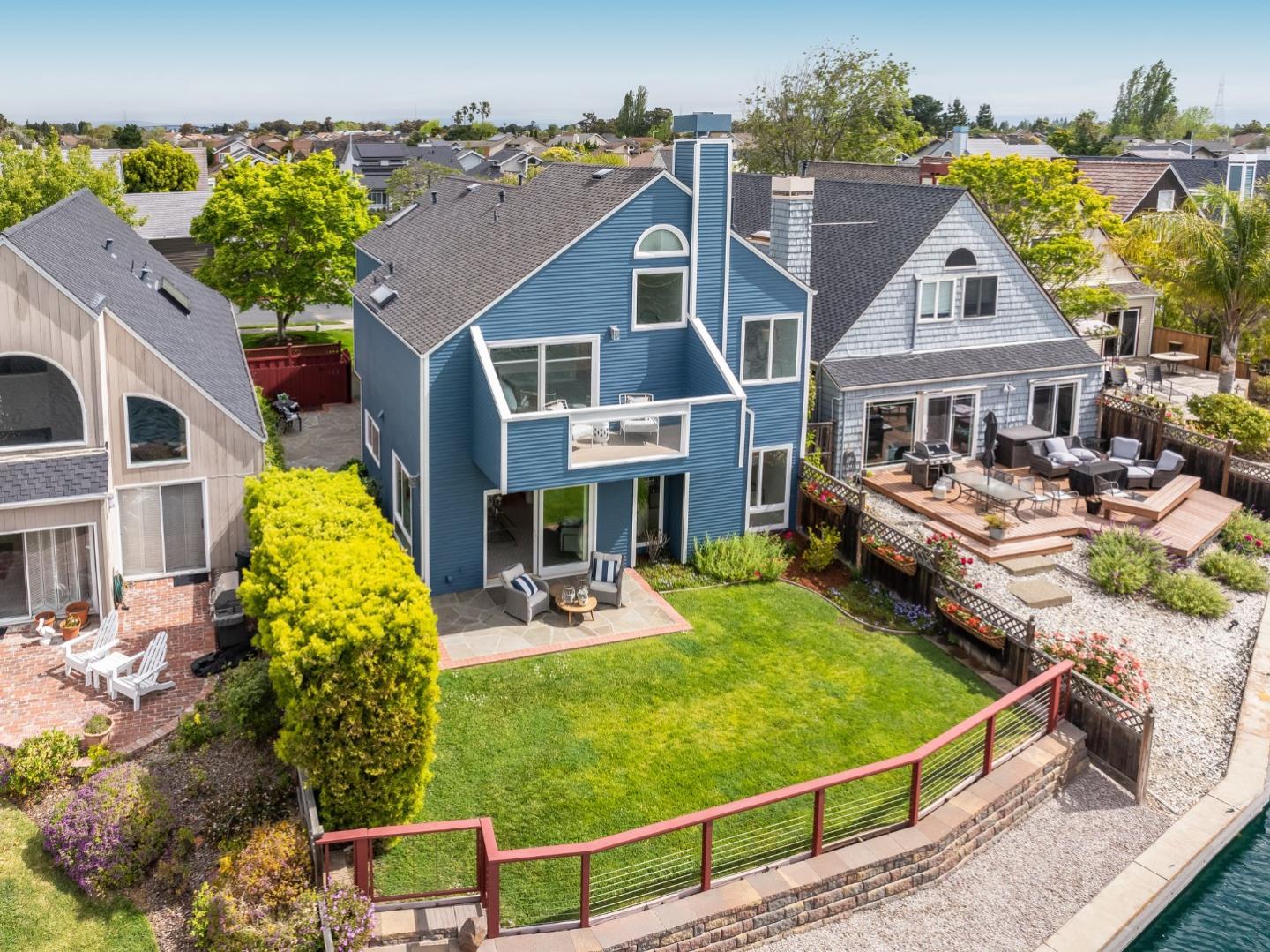 Ensconced in the prestigious enclave of Whalers Island and idyllically situated on the glistening aquamarine waters of Foster City lagoon, this spectacular 4BR/3.5BA residence is truly a luxurious private oasis. Magnificent elevated ceilings, clean contemporary lines, expansive windows, and distinctive architectural elements provide an exquisite backdrop for a captivating display of volume, scale, and radiant natural light. Thoughtfully designed to showcase scenic waterfront views and vibrant rear grounds, the cohesive floor plan harmoniously weaves formal and casual living spaces. Artfully pairing granite, tile, wood, and stainless steel, the bright remodeled eat-in kitchen is primely positioned off the family room, which grants access to the outdoor living area. Escape to the primary suite featuring a soaring half-vaulted ceiling, a water-facing balcony, walk-in closet, and dual vanities. A second impressive bedroom suite, two bedrooms, dedicated office, hall bathroom, and laundry room complete the upper level. Remarkable amenities include 2 pools, a kiddie pool, jacuzzi, 2 tennis courts, 2 pickle ball courts, a basketball court, picnic area, and a boat park. Experience Venetian living at its finest with an exclusive boat dock and 5 miles of meandering waterways to explore!