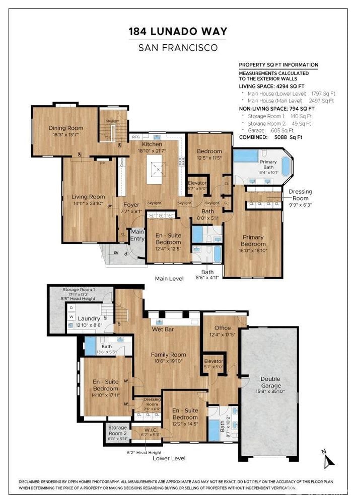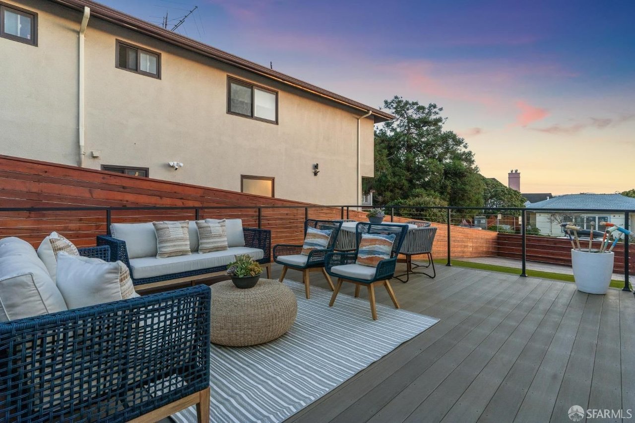 Experience the epitome of modern luxury living in this grand residence, perfectly perched on a magnificent corner lot. Boasting an impressive street presence, this recently rebuilt home spans 5 bedrooms and 5 full baths, PLUS office. The main level features a sunken living room w/ gorgeous arched windows, formal dining room, professionally appointed chef's kitchen, primary suite with the most fabulous bathroom, two additional bedrooms & two more full baths. Lower level has family/media room w/ wet bar & wine fridge, guest suite w/ full bath & walk-in closet, an additional bedroom & full bath, proper laundry room, storage & access to the attached garage. An ELEVATOR transports you between floors, providing easy access for residents of all ages & abilities. This rare modern amenity adds an extra touch of luxury to everyday living. Both living levels enjoy access to the epic outdoor space, which runs along 3 long sides of the house. Paved walkways, large deck, an abundance of evergreen turf & fenced-in parking pad for multiple cars. Unique, high-end finishes & materials throughout. Expansive city outlooks. Quiet cul-de-sac location, but just moments to vibrant West Portal, Stonestown & Ocean Avenue. Quick access to Hwy 280 & straight-shot north to Golden Gate Park and beyond.